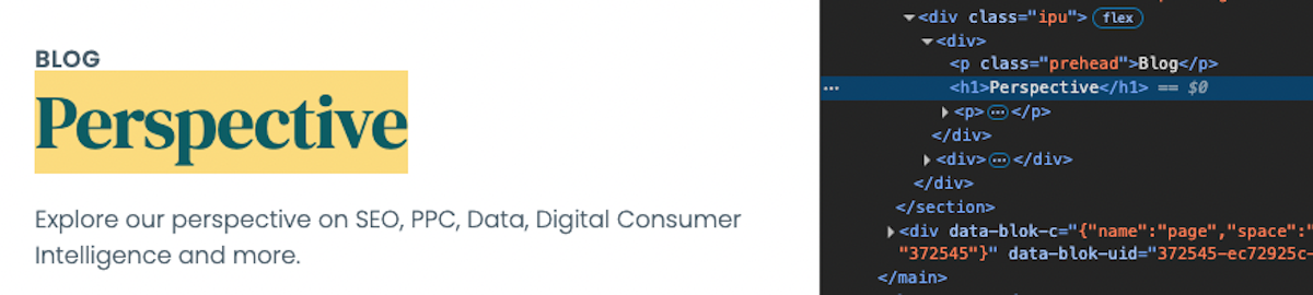 • The H1 should be visible in the response HTML when you “view source” for the blog category page.
